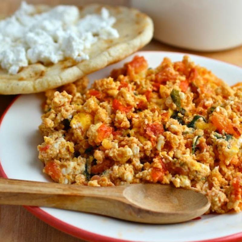 Potato, hogao, bell peppers, mushrooms, onion, carrots and zucchini.